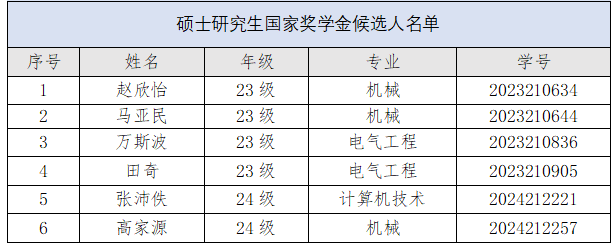各硕士研究生国家奖学金候选人:
