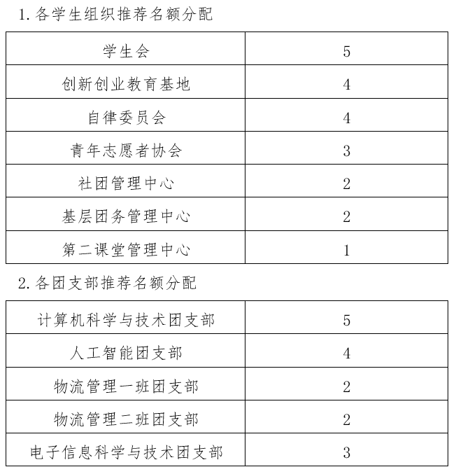 2.各学生组织、团支部按名额择优推荐,附推荐意见(附件1),填写汇总表(附件2),纸质版材料(附件1)于11月17日12点前交至南讲堂214,电子版材料(报名表、汇总表)放入一个文件夹,以压缩包形式发送至[email protected],压缩包和邮件主题均需命名为【团支部(学生组织)全称-青马学员申报】,电子版材料截止时间与纸质版材料提交截止时间一致。